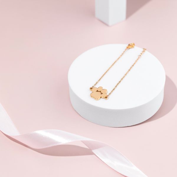 Vi presentiamo il nostro braccialetto a forma di zampa in un brillante color oro, un tributo all’amore incondizionato dei nostri amici pelosi. Questo affascinante braccialetto presenta un delicato e intricato ciondolo a forma di zampa, che celebra il legame tra uomini e animali. Realizzato con cura e precisione, aggiunge un tocco di calore e affetto al vostro stile. Sia che lo si indossi per ricordare il proprio amato animale domestico o come dichiarazione di compassione per gli animali, il nostro braccialetto a forma di zampa in colore oro emana eleganza e sentimentalismo, rendendolo un accessorio perfetto per ogni amante degli animali.