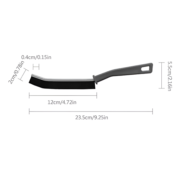 Con una lunghezza totale di 23,5 cme una testina con setole da 12 cm, questo strumento è facile da riporre. Appeso o riposto in un cassetto, è sempre pronto per la prossima operazione di pulizia.