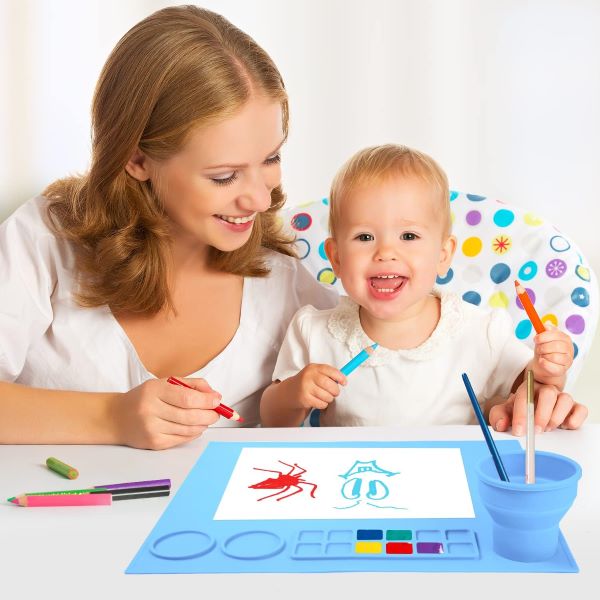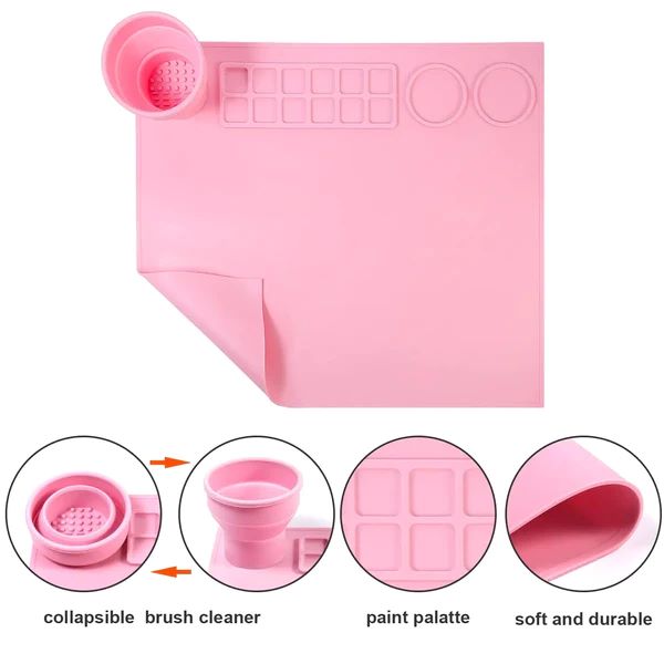 Il nostro primo tappetino in assoluto con una tazza per la pulizia dei pennelli incorporata e pieghevole. La tazza per la pulizia dei pennelli è progettata per contenere acqua e pulire i pennelli.