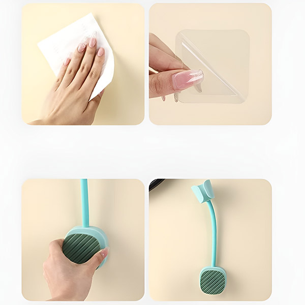 Semplice da installare su qualsiasi superficie piana e pulita senza danneggiare la parete. Include adesivi biadesivi di ricambio per un fissaggio sicuro.
