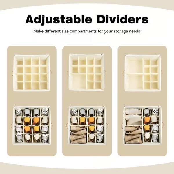 Realizzato con materiali di alta qualità come cartone rinforzato, tessuto Oxford ad alta densità e divisori in pannello cavo, questo organizzatore per scarpe è progettato per durare nel tempo, offrendo una soluzione di archiviazione affidabile e duratura.