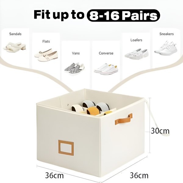 L’organizzatore per scarpe SHOVERA è progettato per contenere 8-16 paia di scarpe, tra cui sandali, pantofole e sneakers, in un formato compatto di 36x36x30 cm. Il suo design pieghevole consente di riporlo facilmente quando non è in uso, rendendolo perfetto per case, dormitori e calzature stagionali.