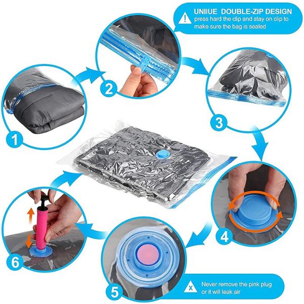 Questi sacchetti sottovuoto sono perfetti per le vacanze perché si può facilmente rimuovere l’aria manualmente e le loro dimensioni compatte li rendono facili da trasportare.