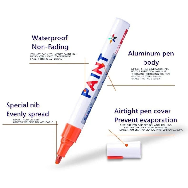 Basta agitare il pennarello, premere e coprire i graffi o creare disegni unici sui tuoi pneumatici.