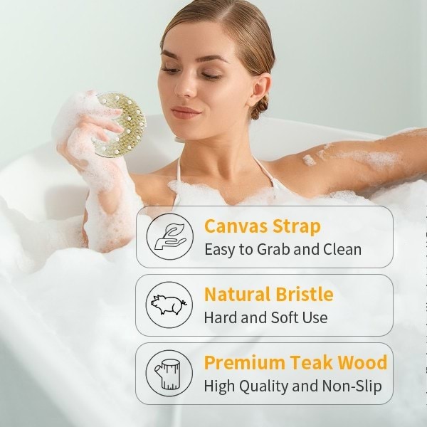 🪥 Realizzata in legno massiccio di teak, offre un comfort antiscivolo, esfolia e rivitalizza con un uso asciutto o bagnato.