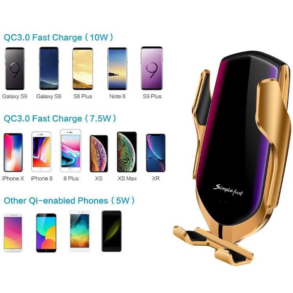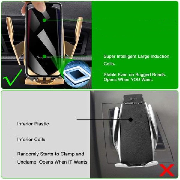 Questo nuovo supporto per auto e caricatore per telefono utilizza una tecnologia intelligente per la ricarica rapida e wireless. L’apertura automatica ti permetterà di riporre il telefono nel supporto con una sola mano!